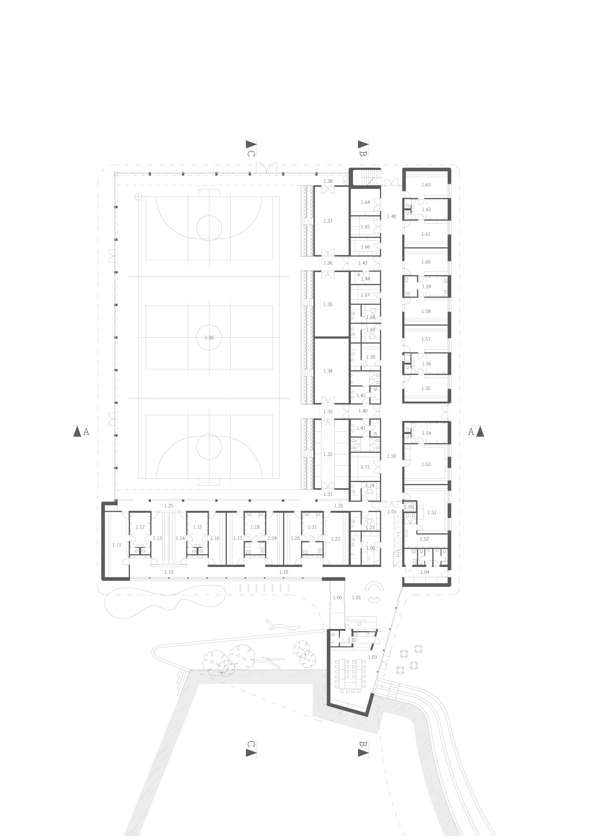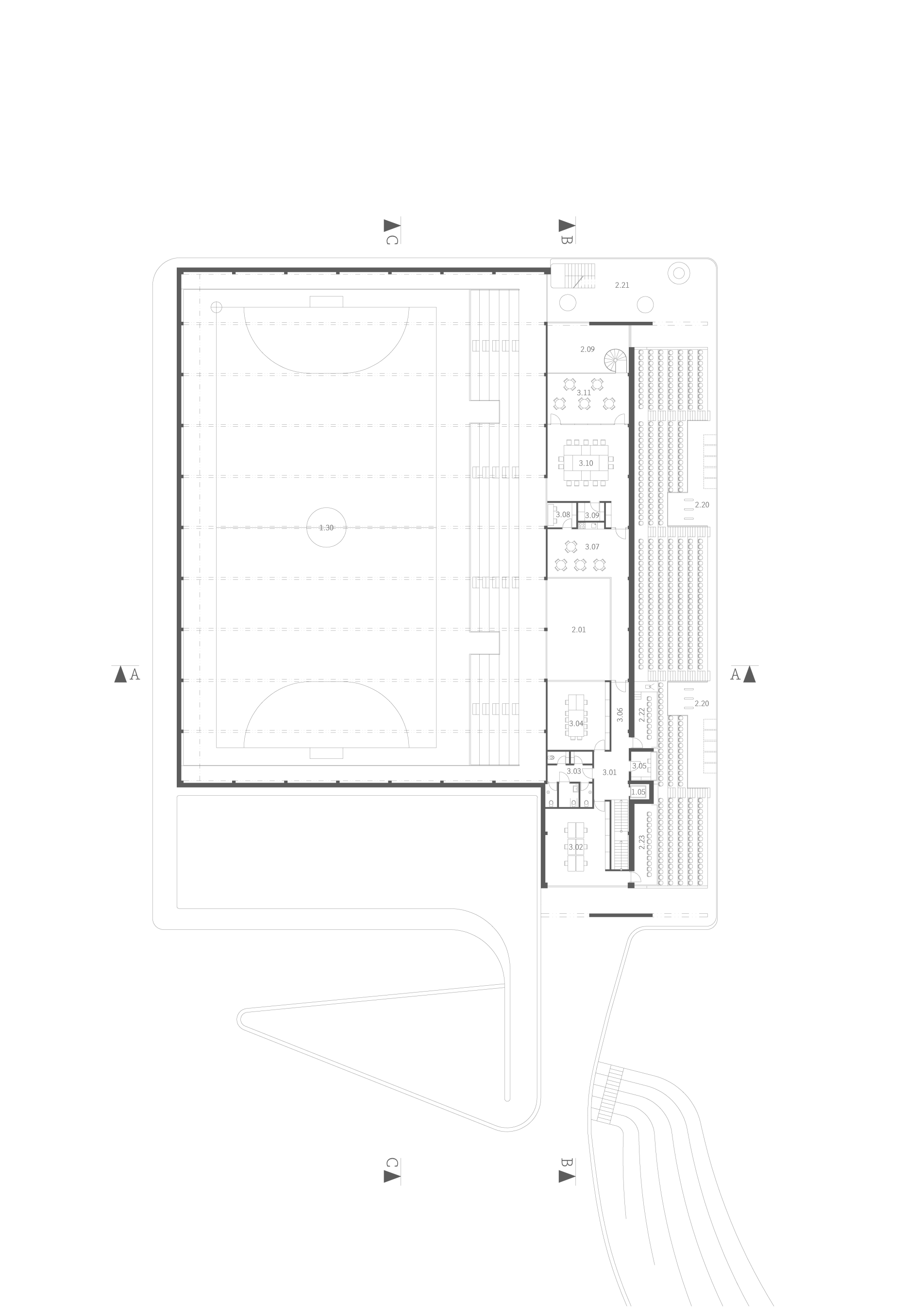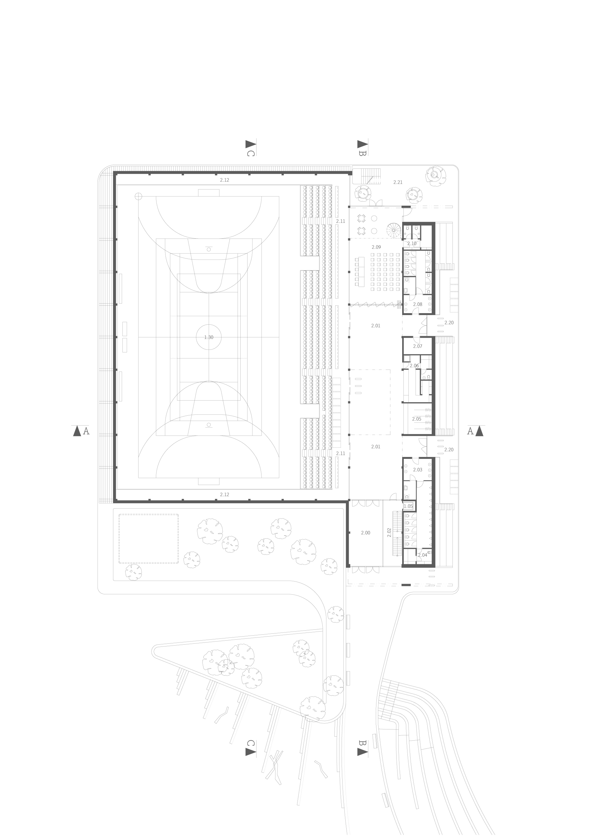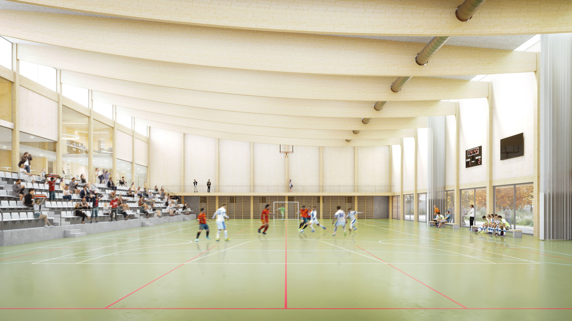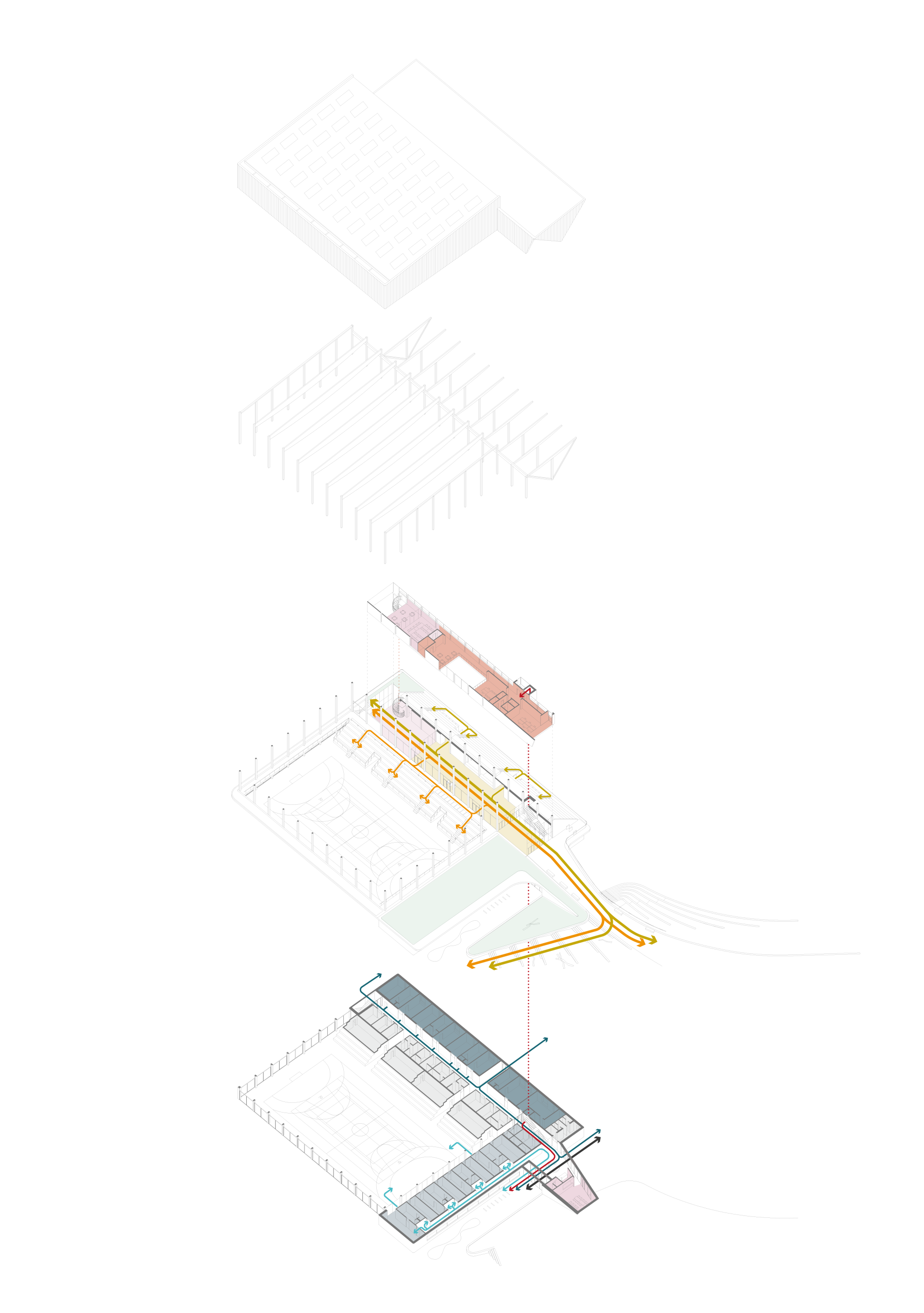 Díky sofistikovanému napojení na okolí zajišťuje zcela bezbariérový a bezkolizní provoz sportovců i diváků.