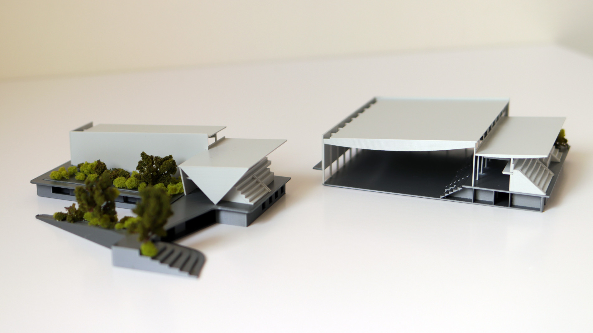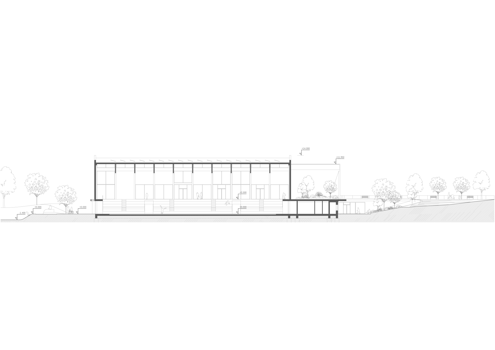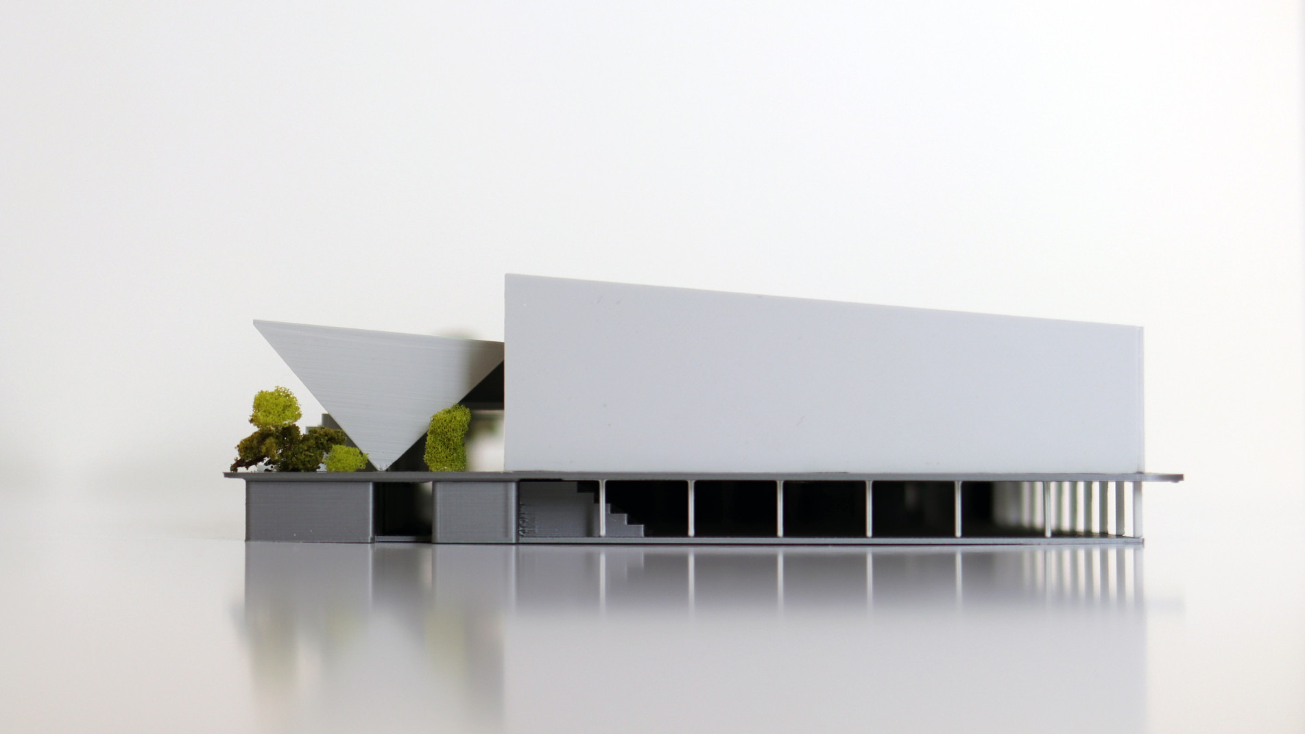 Objekt vrůstá do struktury okolí maximálním napojením na parter, zeleň a morfologii terénu.