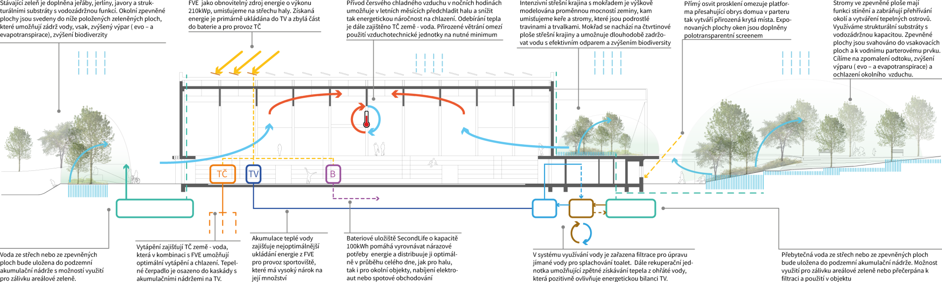Propracovaný energetický koncept a využití přírodních zdrojů posouvá objekt směrem k energetické soběstačnosti a minimálním provozním nákladům.