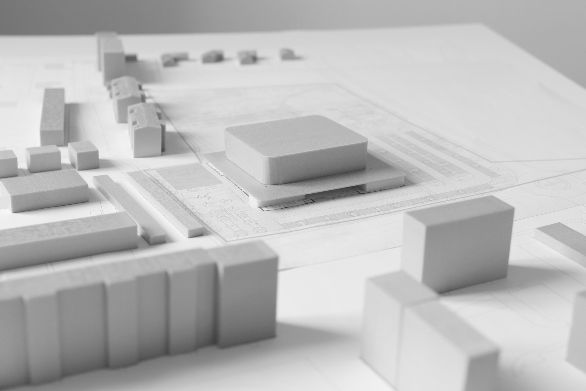 Perforování přízemní platformy a dělení do menších celků dává stavbě lidské měřítko. Z horizontu chodce se hlavní ustoupená hmota tolik neuplatňuje a dominantou se stává přízemní část napojená na parter. Z dálky je naopak vysoká dominanta kšiltem střechy přízemí podtržena.